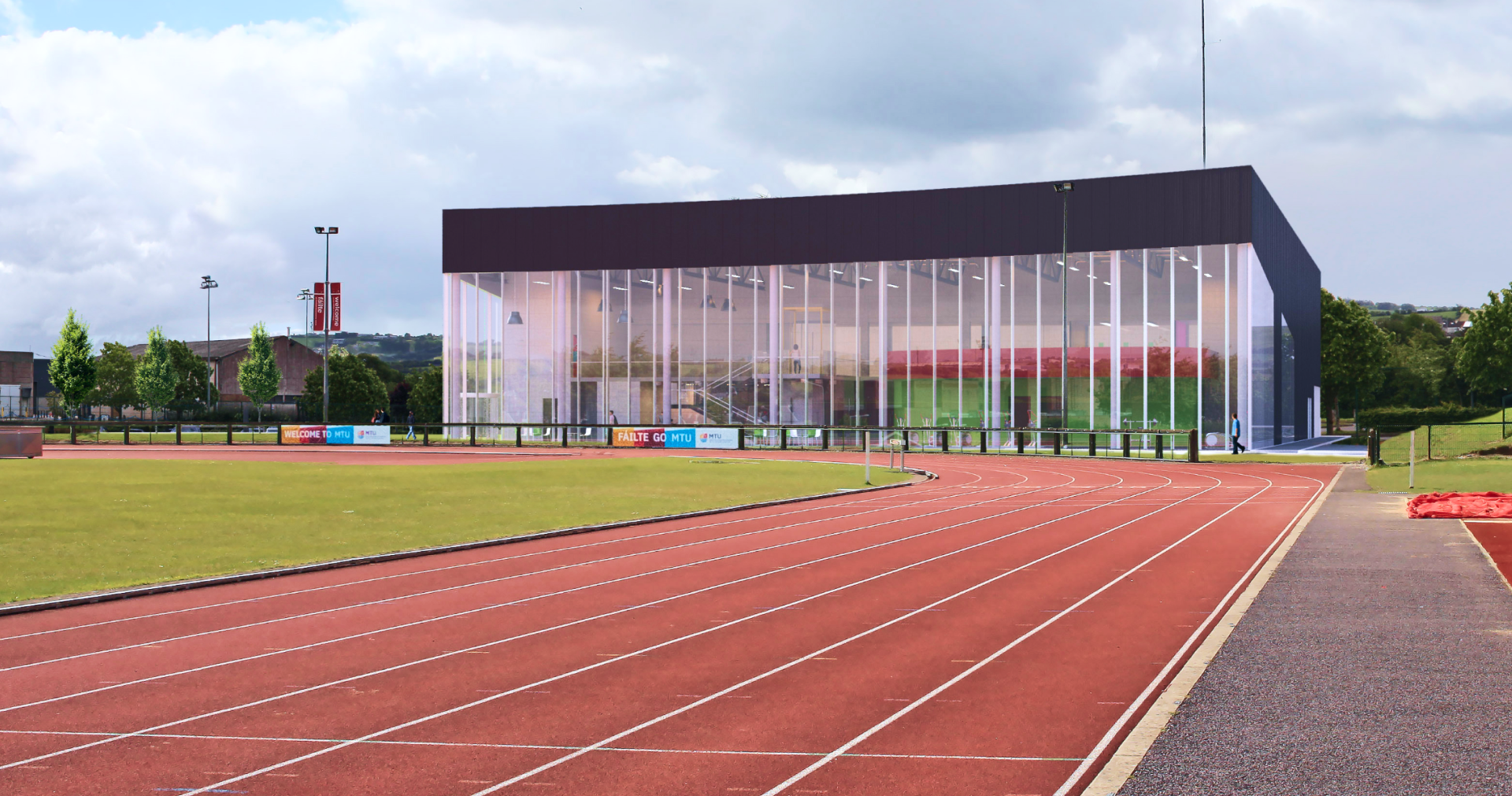 The newly refurbished MTU Athletics Track opened in July 2024 with the MTU Arena building in the background